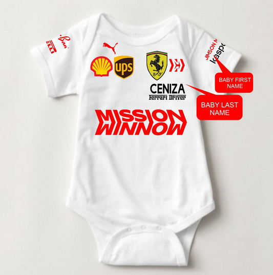 Baby Career Onesies - Car Racing Ferrari Suit (White)