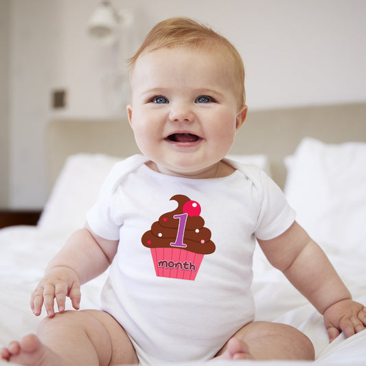 Baby Custom Monthly Onesies - Cupcakes