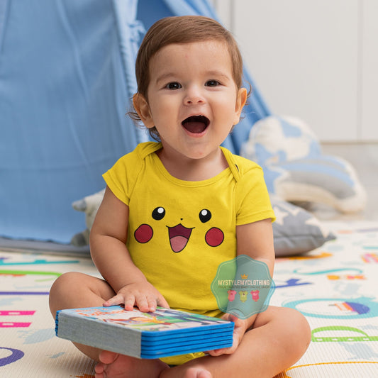Baby Character Onesies with FREE Name Back Print - Pokemon-Pikachu with Shoe Set