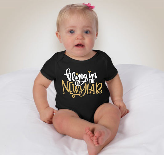 Baby New Year Holiday Onesies - Bling in the New Year Black